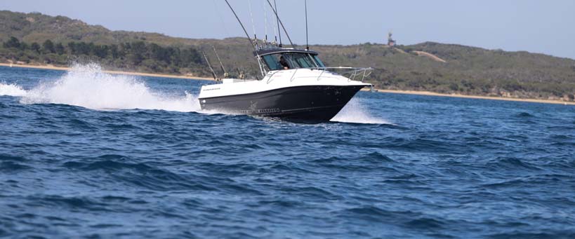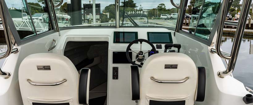 Capable of fishing six large adult anglers in comfort, the enormous cockpit now has a standard side door which creates an ideal offshore fishing and diving platform.