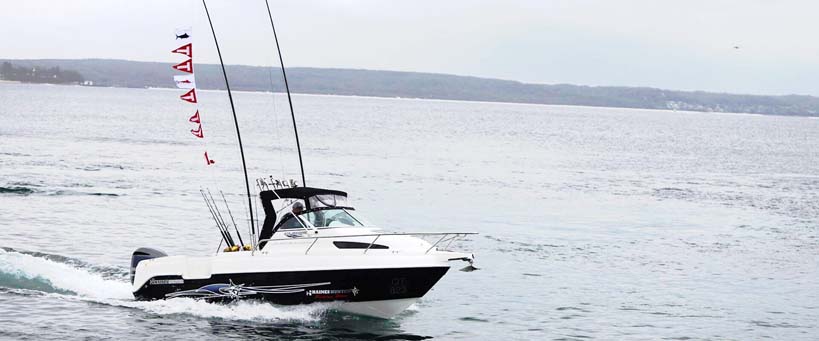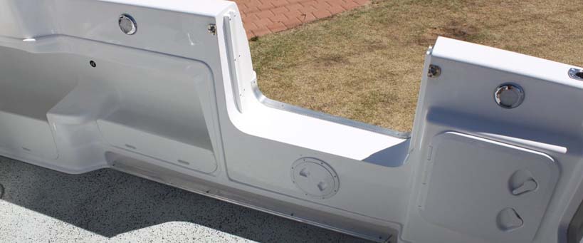 Capable of fishing six large adult anglers in comfort, the enormous cockpit now has a standard side door which creates an ideal offshore fishing and diving platform.